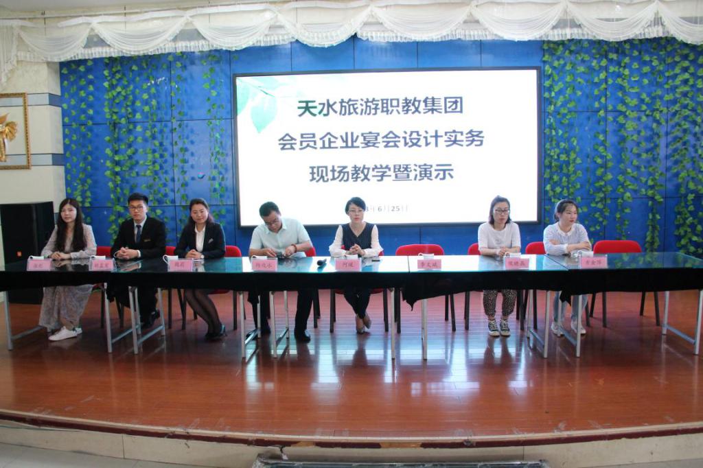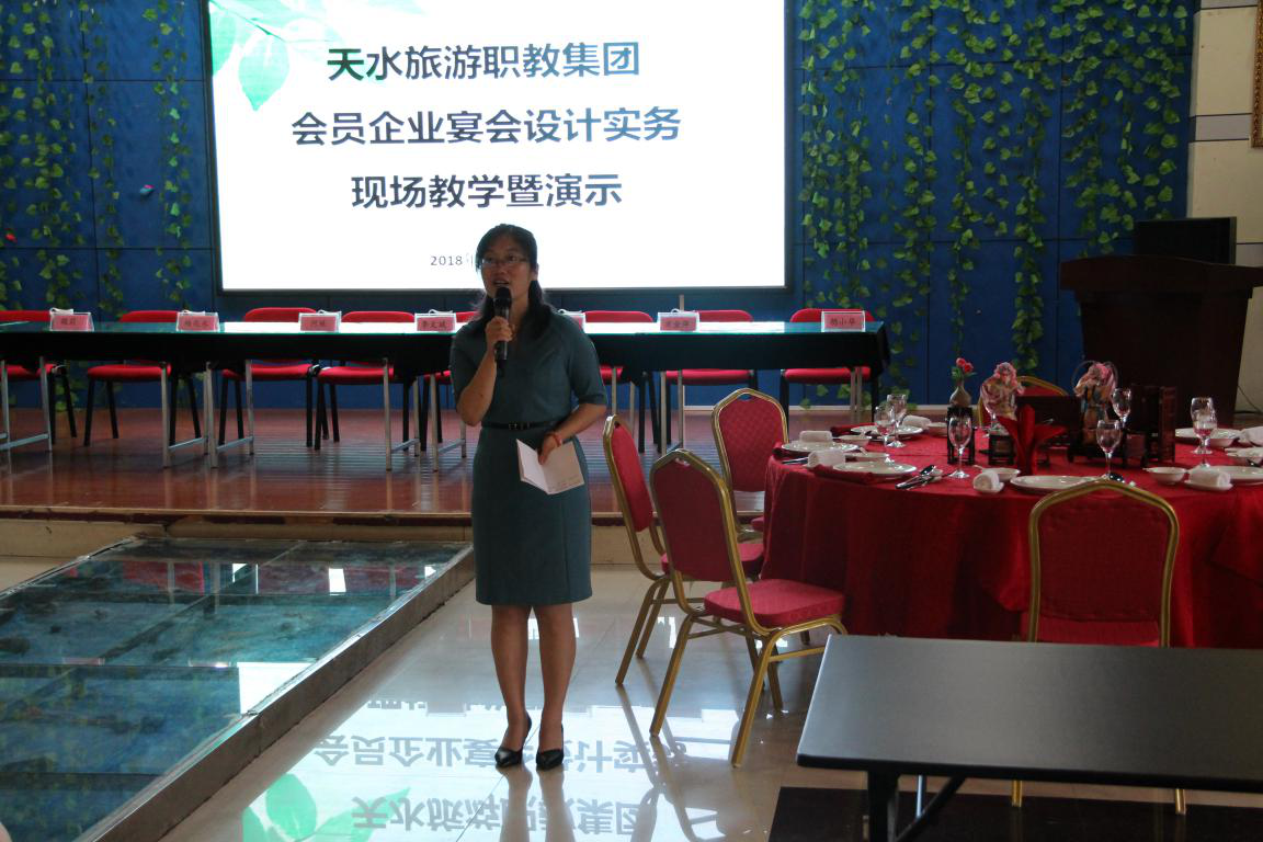 2018年6月26日,天水旅游职业教育集团在甘肃工院职业技术学院yl23411永利集团官网西点实训室举行了集团会员企业《宴会设计实务》现场教学暨演示观摩活动。参加本次活动的有来自山东、浙江、江苏、内蒙古地区的8家星级酒店,山东日照职业技术学院酒店管理教研室主任宁双副教授以及甘肃礼县职业中专的教师,yl23411永利集团官网经理何瑛教授及全体专业教师参加,活动由yl23411永利集团官网副经理李玉林主持。